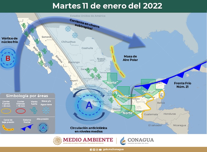 Estamos en el periodo de mayor actividad de frentes fríos para la región peninsular y se estima que en lo que resta del mes se presenten hasta 3 frentes fríos más, incluyendo al nuevo sistema frontal 21 que llegaría en los próximos días. De la misma manera, para el mes de febrero se estima la llegada de hasta 4 frentes fríos y posiblemente hasta 3 en marzo.