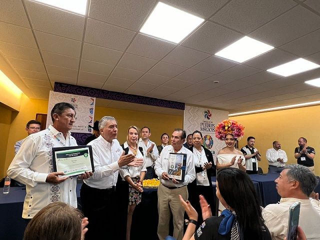 En la cuarta edición del Tianguis Turístico de Pueblos Mágicos 2022, que se realiza en Oaxaca, la fundadora de Riviera Maya Sostenible y representante de Green Destinations, Beatriz Barreal Danel, entregó al popularmente conocido como el amigo “Chepe” este reconocimiento, estando también presente la directora de Desarrollo de Productos Turísticos de la Secretaría de Turismo de Quintana Roo.