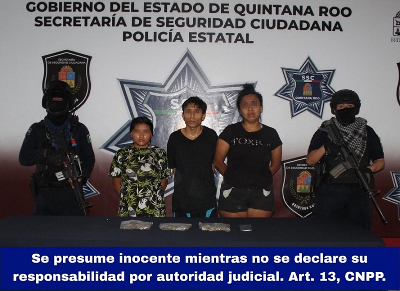 La SSC logró la detención de Hugo Alberto “N”, Fátima Vannesa “N” y Dulce “N”. Los hechos se registraron cuando elementos de la corporación realizaban labores de vigilancia en la privada Zafiro, del fraccionamiento Linda Vista, en la Supermanzana 104.