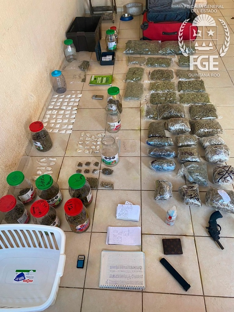 Cozumel.- Dos personas -un masculino y una femenina- fueron detenidas durante este operativoCozumel. La Fiscalía General del Estado de Quintana Roo informa que, Agentes de Investigación adscritos a la Fiscalía Especializada en Delitos contra la Salud en la Modalidad de Narcomenudeo, aseguraron diversos estupefacientes y detuvieron a 2 personas tras el cumplimiento de una orden de cateo -girada por un juez de control- en una vivienda ubicada en el fraccionamiento El Encanto de este municipio, derivado de la carpeta auxiliar 01/2022.