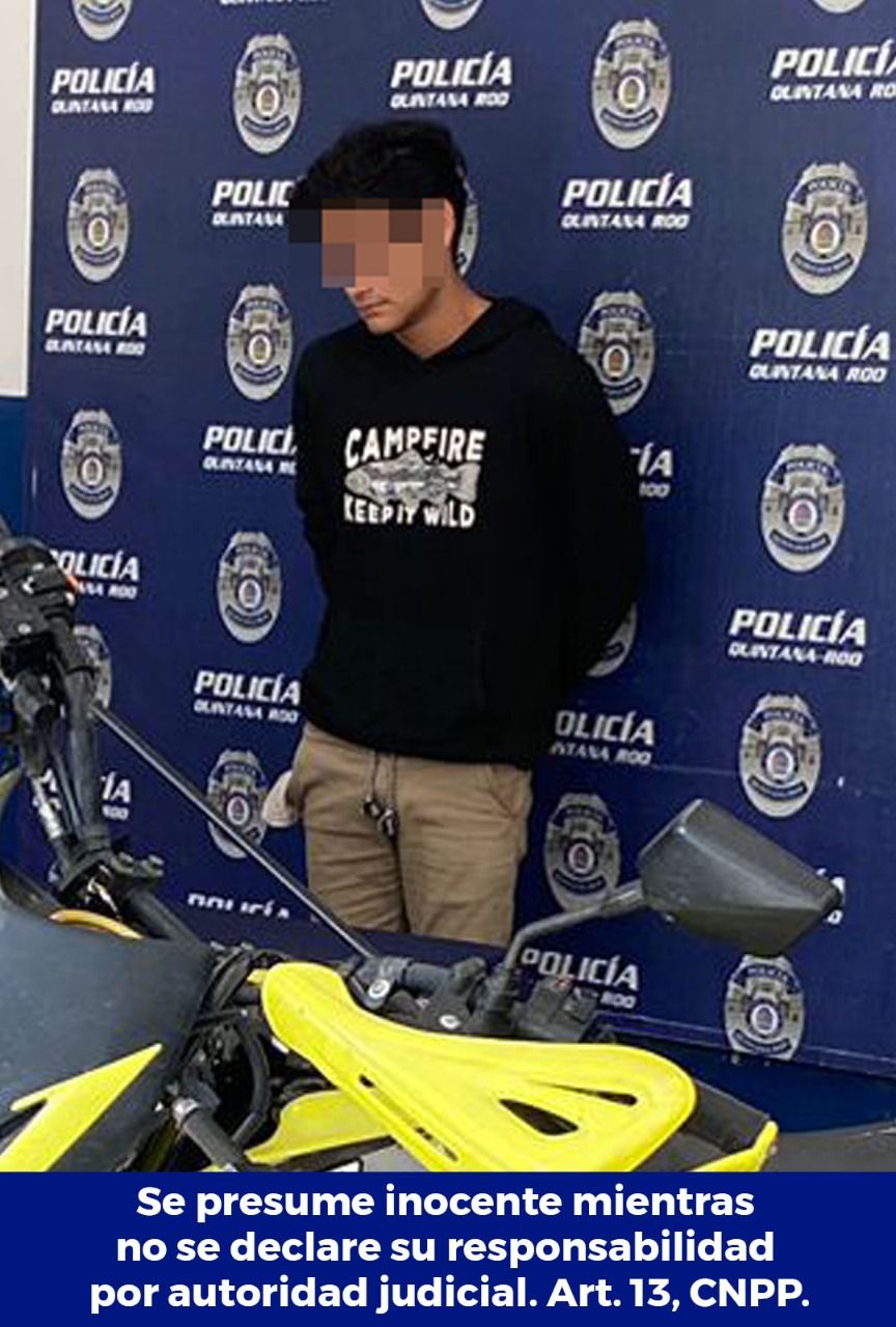 Mientras realizaban recorridos de prevención del delito, sobre calle 6 de Octubre entre calle Polyuc y avenida Nicolás Bravo de la colonia Caribe, en Chetumal, Quintana Roo, los elementos pasaron junto a un sujeto que se encontraba parado a un costado de una motocicleta de color amarillo hablando por teléfono.
