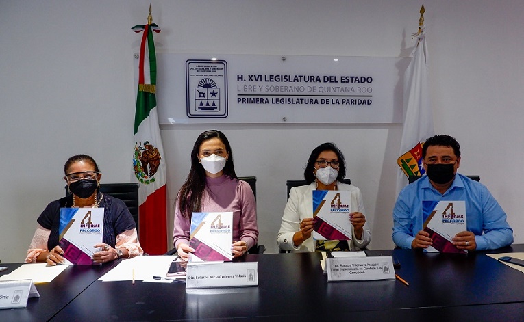 Cancún, Quintana Roo. – La XVI Legislatura del Estado, a través de la Comisión Anticorrupción, Participación Ciudadana y Órganos Autónomos que preside la diputada Tepy Gutiérrez Valasis, recibió el cuarto informe de actividades de la titular de la Fiscalía Especializada en Combate a la Corrupción Rosaura Villanueva Arzápalo, atendiendo el mandato legal correspondiente.