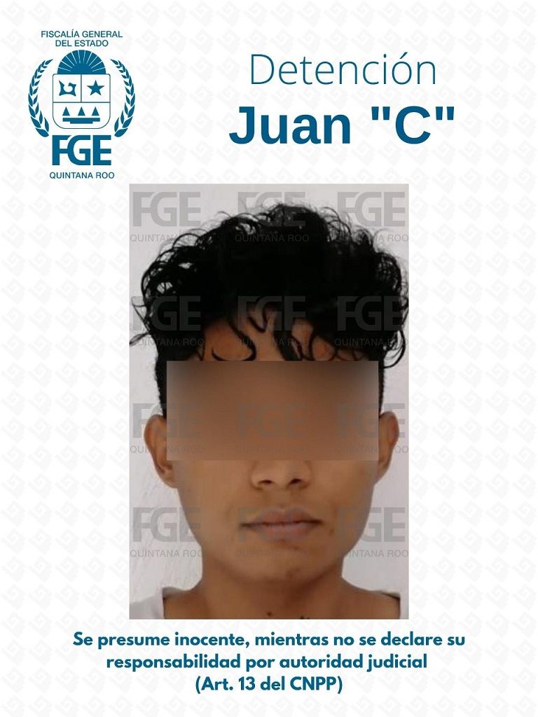 Con los datos de prueba y los indicios recabados por peritos especializados, Fiscales del Ministerio Público Especializados en la Investigación de Homicidios iniciaron la carpeta de investigación a la que integraron datos de prueba y las evidencias científicas y, tras judicializar el caso solicitaron y lograron que un juez de control emitiera la orden de aprehensión en contra de Juan “C”, la cual, fue cumplimentada este sábado 16 de julio por elementos de la Policía de Investigación en calles del fraccionamiento Misión Villamar del municipio de Solidaridad.