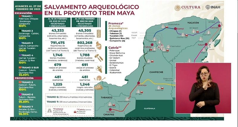 Se informó además que se trabaja con la potencialización del transporte de carga, con una terminal de intercambio en Palenque, que unirá al tren con el Corredor Interocéanico, así como terminales multimodales en Campeche, Progreso, Cancún y Chetumal.