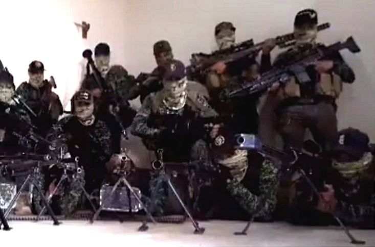 Asimismo, se trata de un ideo de duración de 1 minuto, donde se aprecian 15 hombres con uniformes tipo militar cargando armas barrett.