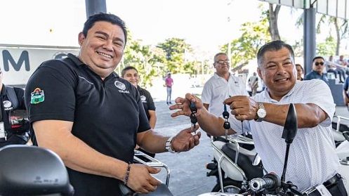 Tulum.- Con el propósito de eficientar el desempeño de las direcciones municipales del H. Ayuntamiento de Tulum, la mañana de este martes, el presidente municipal, Marciano Dzul Caamal, hizo entrega de 20 motocicletas para las diligencias administrativas y operativas, con inversión 999 mil 800 pesos provenientes del ramo 28.