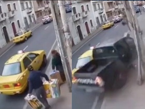 Cuando ambos se van a subir al taxi, aparece, de la nada, una camioneta negra en escena y termina por impactar a la mujer, en tanto que al hombre lo aplasta con la parte trasera del taxi.