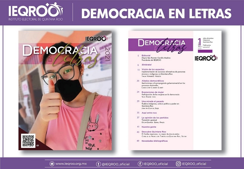 Chetumal.– El Instituto Electoral de Quintana Roo presentó el número 1 de la Revista Digital “Democracia en Letras” órgano de difusión oficial mediante el cual la ciudadanía conocerá a través de diversas secciones y temas relacionados con la divulgación de la política electoral, la democracia y participación ciudadana en Quintana Roo.
