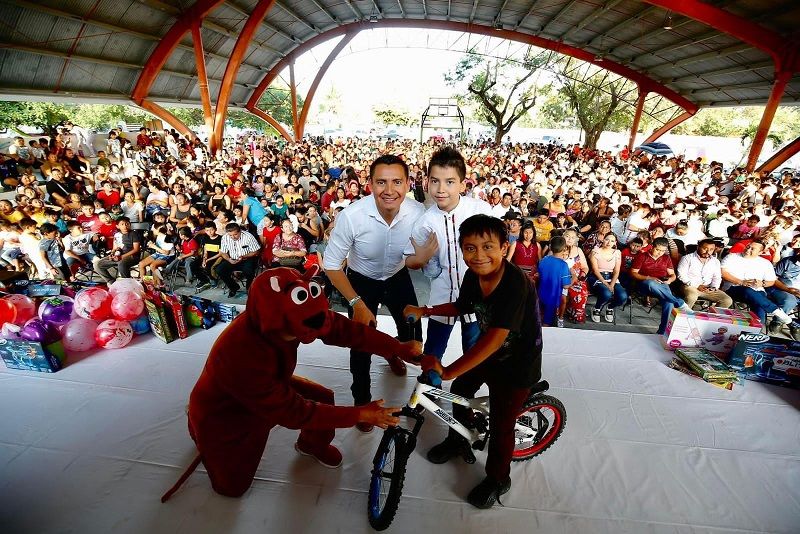 Acompañado por su hijo Alejandro, más de mil niños y sus familias, así como de amigos y regidores, llevó alegría a esos pequeños de las comunidades más vulnerables, recordando que los niños tienen derecho a vivir en un ambiente sano y en condiciones que permitan su desarrollo y bienestar.