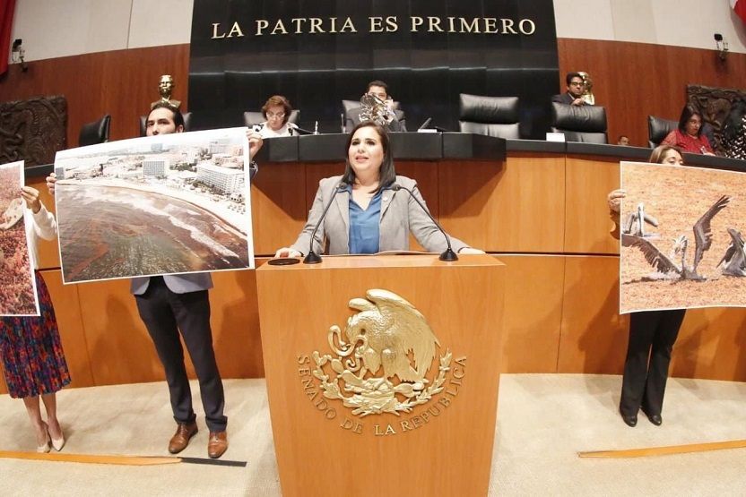 La senadora con licencia explicó que el fenómeno del alga también debe incluirse en la Ley Federal de Derechos, y con ello se tendrían recursos económicos a través del pago que hacen los turistas extranjeros por ingresar al país.