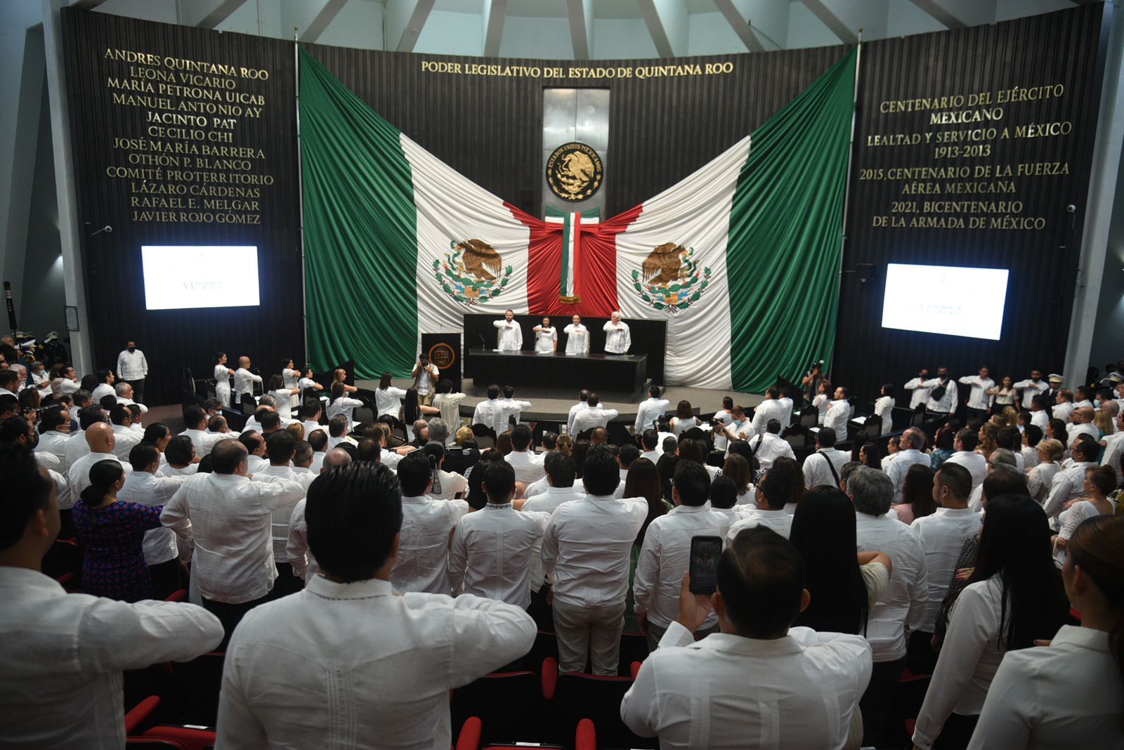 La presidenta de la Mesa Directiva expresó que la XVII Legislatura asume el compromiso de honrar nuestro encargo actuando en todo momento con probidad y apego a nuestro mandato y en la perspectiva de los grandes intereses de nuestro Quintana Roo.