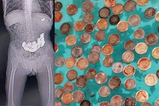 Los médicos se sorprendieron al descubrir que se había tragado mas de 1.5 kilos de monedas durante dos o tres meses.