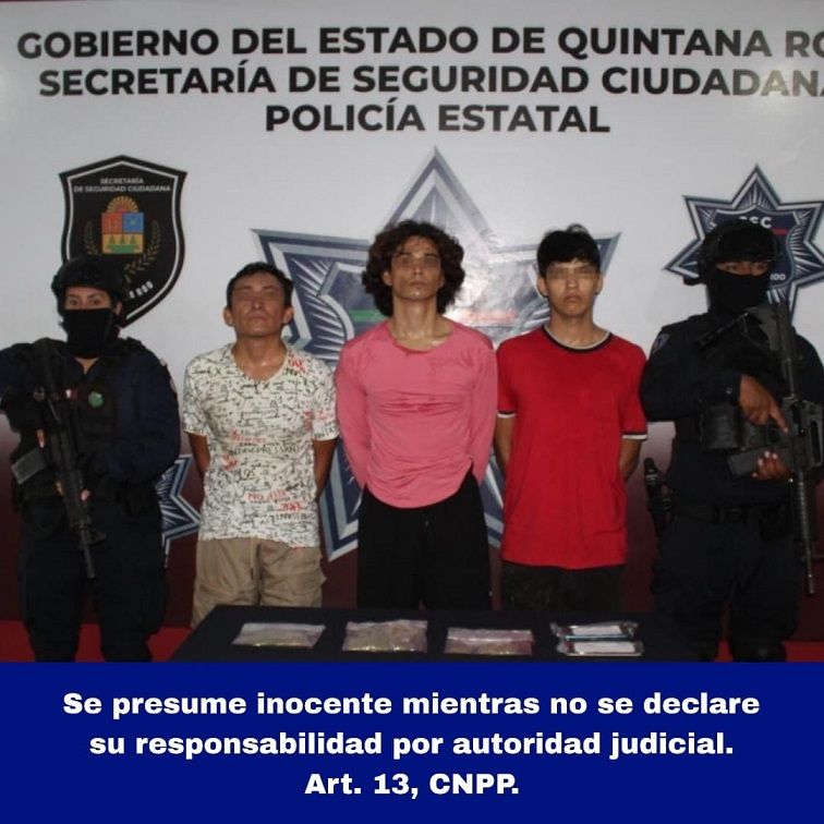 Cancún.- La Secretaría de Seguridad Ciudadana (SSC), pone a disposición a tres personas por su probable participación en delitos contra la salud, en Benito Juárez.