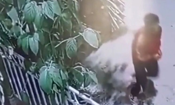 Cámaras de seguridad captaron el momento preciso en el que un sujeto perdió el brazo por la explosión de una bomba que intentaba dejar en la casa de un empresario al que estaba extorsionando.