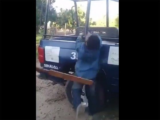 Un video que circula en redes sociales muestra el momento en el que policías de Sinaloa dan tablazos a un detenido, quien se encuentra esposado a una patrulla; el dolor del castigo es tal que el sujeto ruega porque se detengan: “Ya papito, perdón”, dice mientras intenta esquivar los golpes.