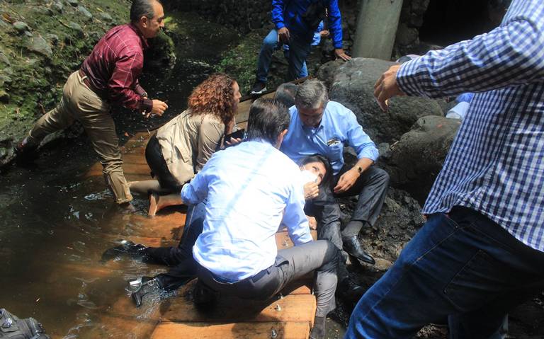 El percance provocó el susto de quienes avanzaban por el cruce, ubicado a unos 20 metros de profundidad en la barranca de Amanalco, y provocó lesiones al alcalde, la presidenta del DIF, Luz María Zagal, las regidoras Wendy Salinas y Patricia Torres (que se fracturó el pie), y por lo menos otras siete personas.