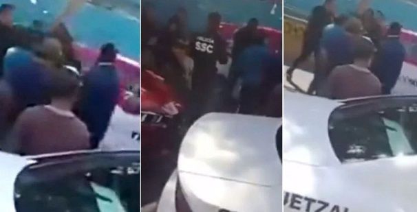 En el video se observa que un taxi se encuentra detenido, pues al parecer los policías realizaban una inspección.