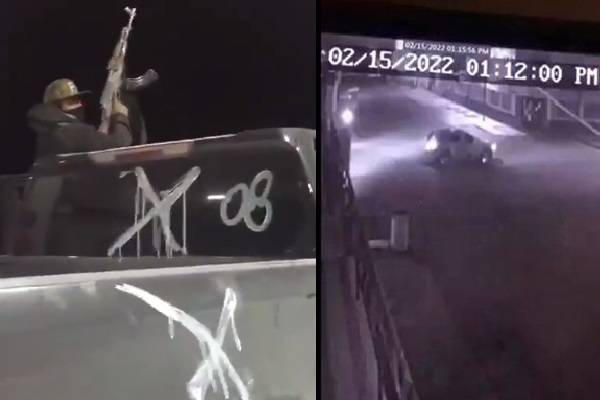 En un video de seguridad se aprecia cómo un numeroso convoy con hombres fuertemente armados, así como con vehículos con blindaje artesanal, circulan por las calles sin que nadie les haga frente.